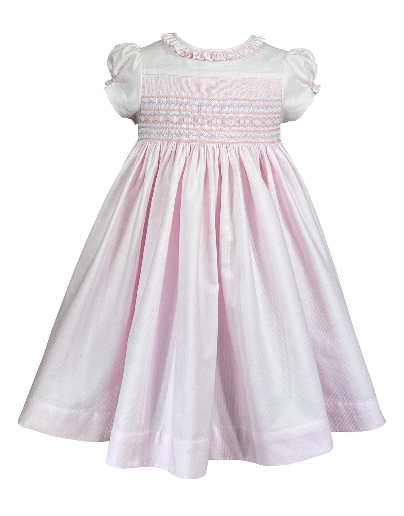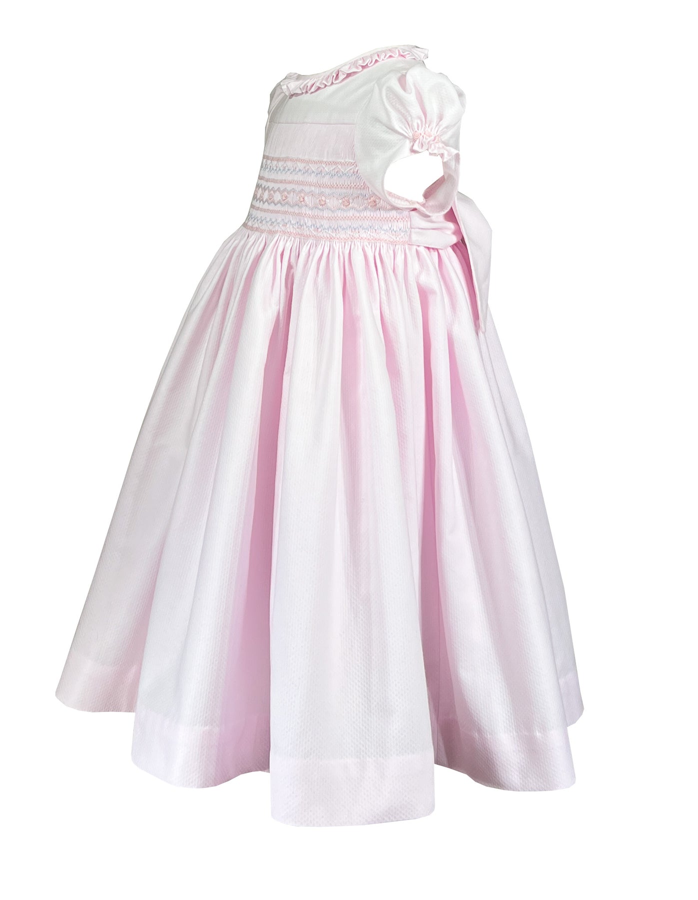special occasion pink dress, handsmocked french cotton, luxury childrenswear