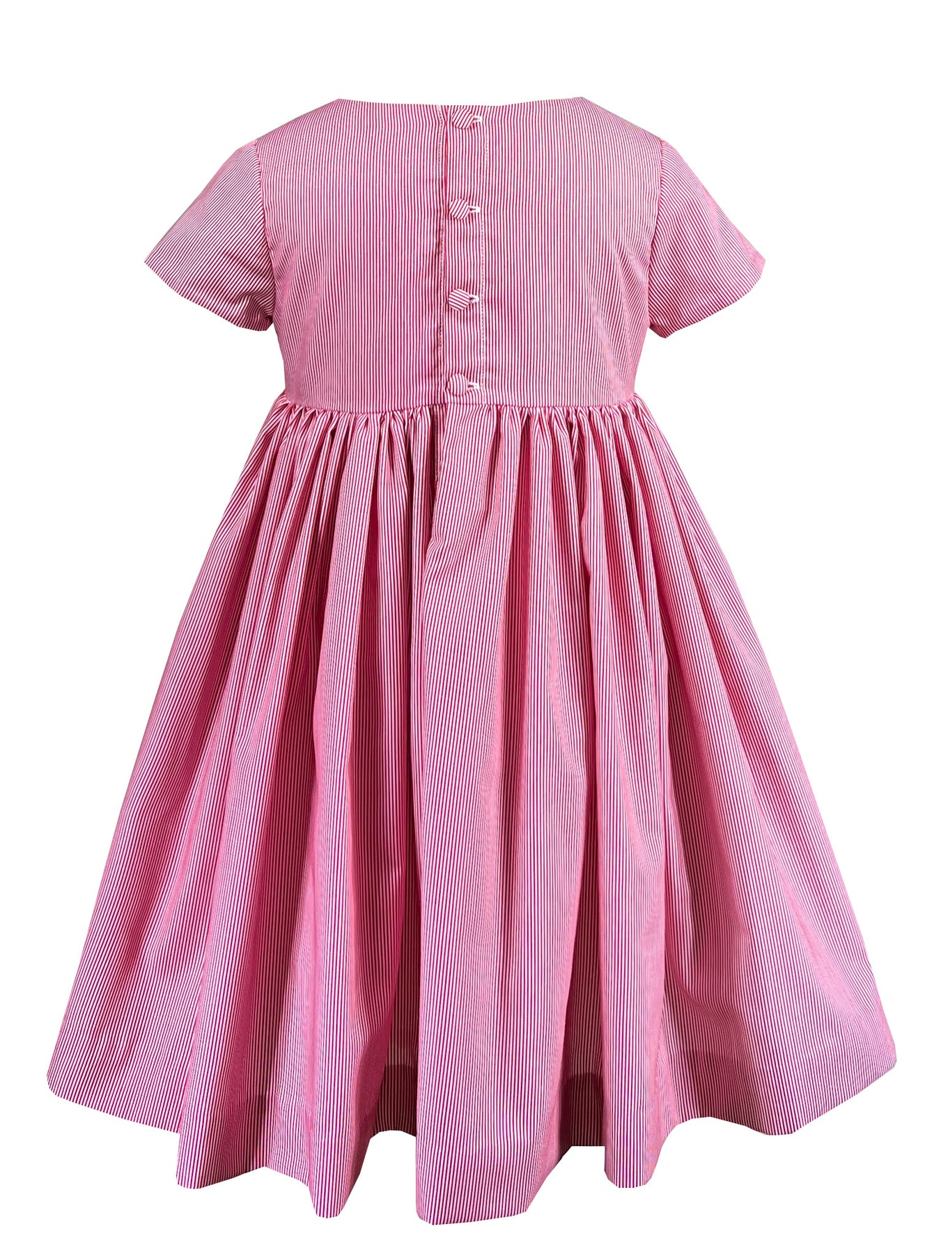 The Red Meridian dress draws its name from those defining lines that connect distant places, much like the stripes that traverse this dress. The handsmocked waistband is where the metamorphosis truly happens: traditional red transforms through subtle gradations of grey and white, proving that even the most classic stripe can be reimagined with artistry. This is heritage craftsmanship meeting modern sensibility, a piece for the collector who appreciates nuance within simplicity.
