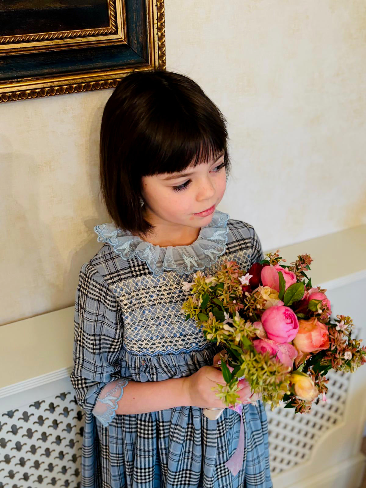 Nous croyons que le véritable style ne réside pas toujours dans la prévisibilité mais dans la juxtaposition réfléchie. Dans cette robe, force et délicatesse dansent ensemble. À travers ce design, nous avons uni deux mondes différents : la beauté robuste des paysages des Highlands avec la douceur raffinée des jardins de cottage. Un rappel que les petites filles peuvent être à la fois audacieuses et douces, aventureuses et raffinées.