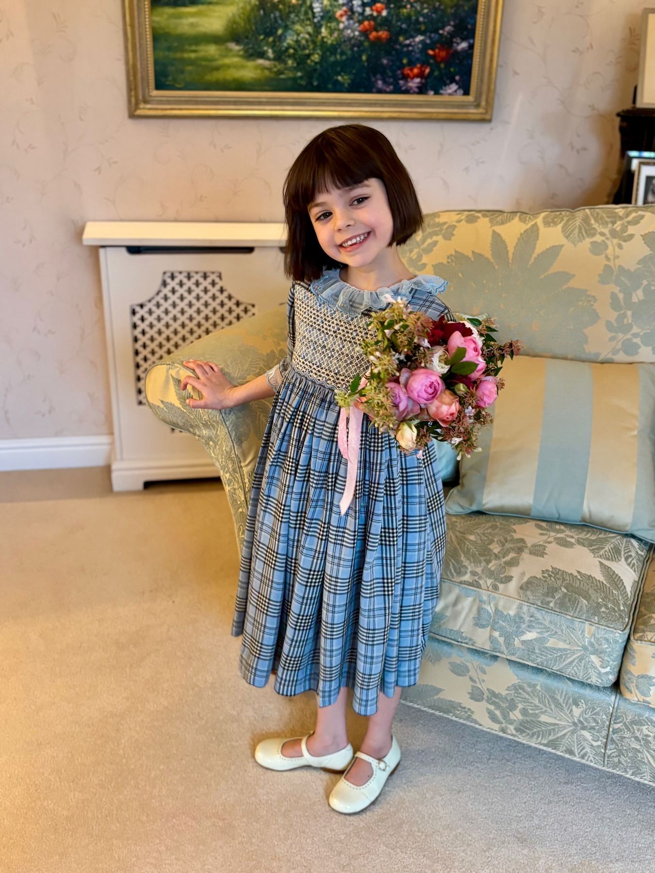 poetic romantic chic winter tartan dress for little girls, posey bouquet