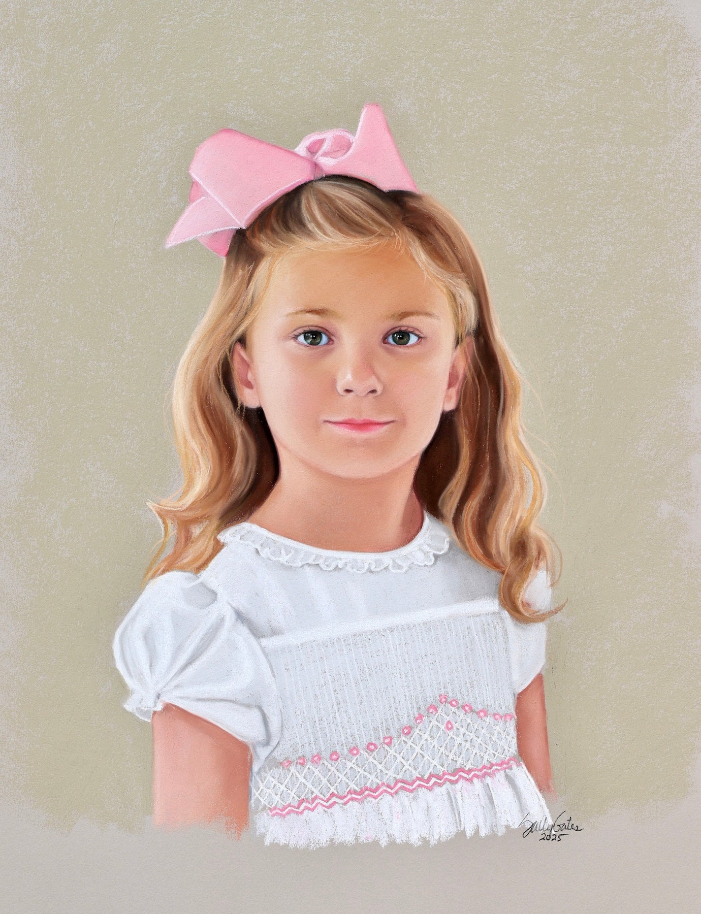 Ce modèle blanc intemporel se distingue par le raffinement des smocks qui forment un subtil diadème. La touche de rose apporte féminité et tendresse.